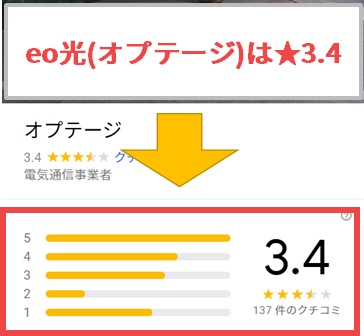 auひかりを提供するKDDIの、Google Mapの評価は★3.2でした。